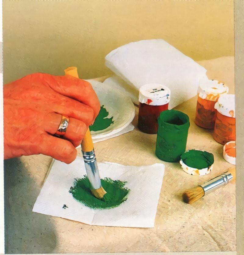 Moje el pincel con poca cantidad de pintura y elimine el exceso mojándola en un papel o un trozo de tela.