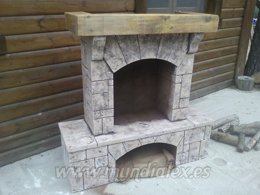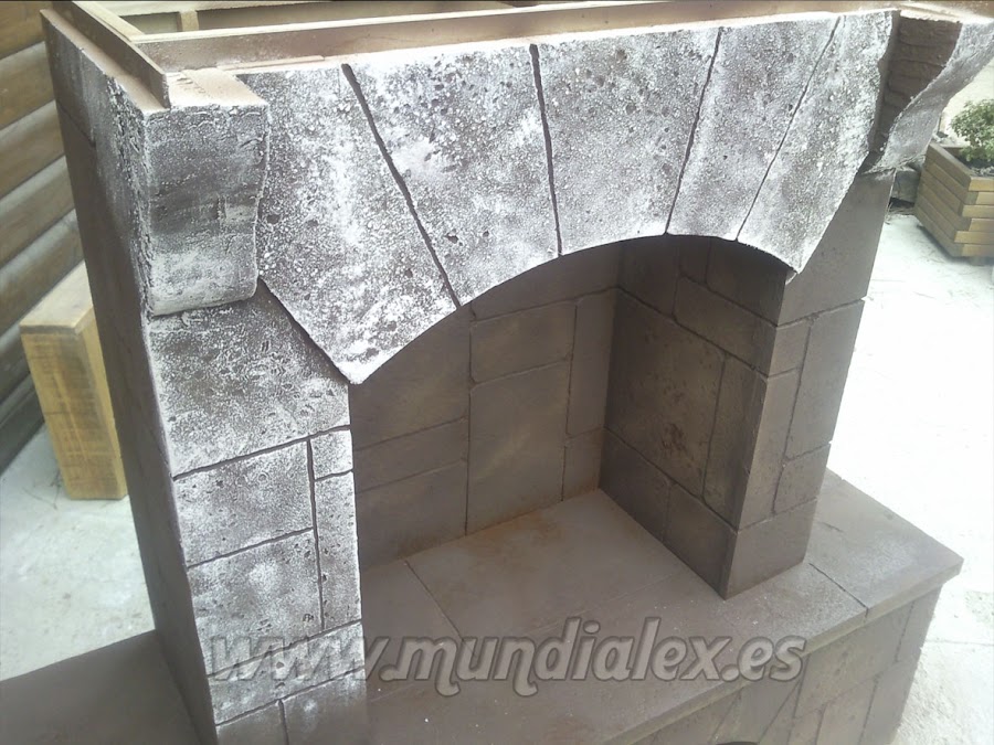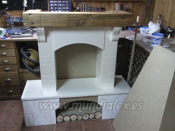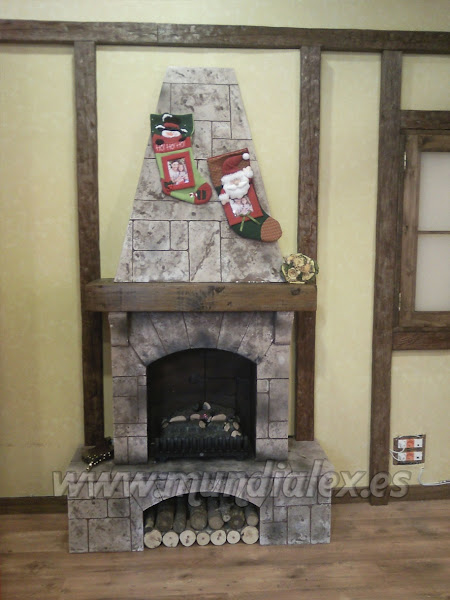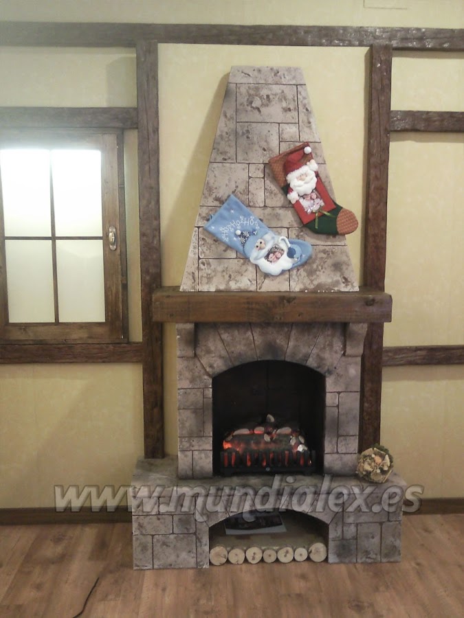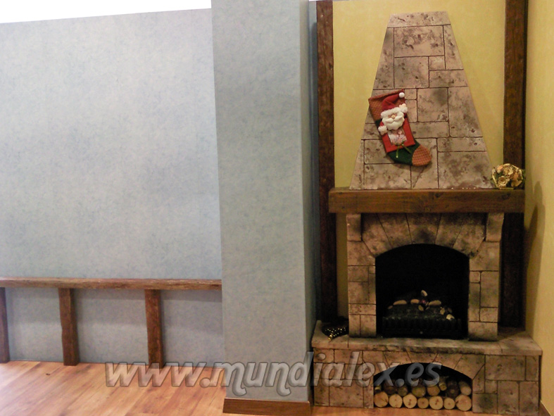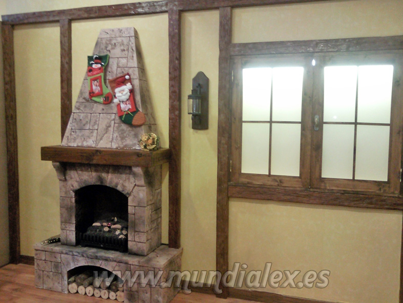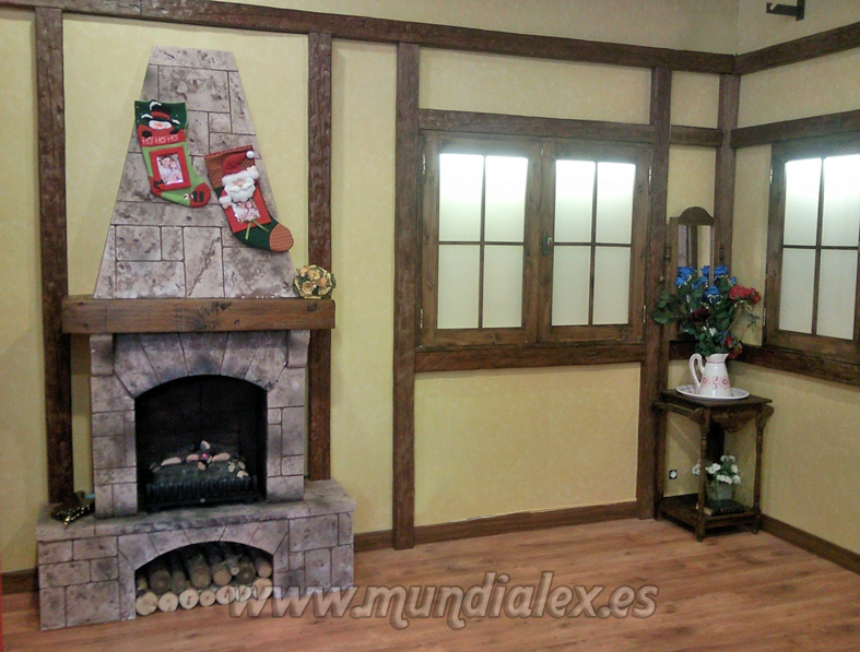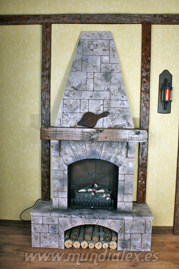 La construcción de la chimenea es a tamaño real, con estructura de madera DM de 3mm y listones de 1,5x3cm que le confieren una gran solidez.