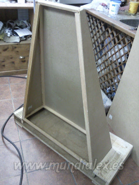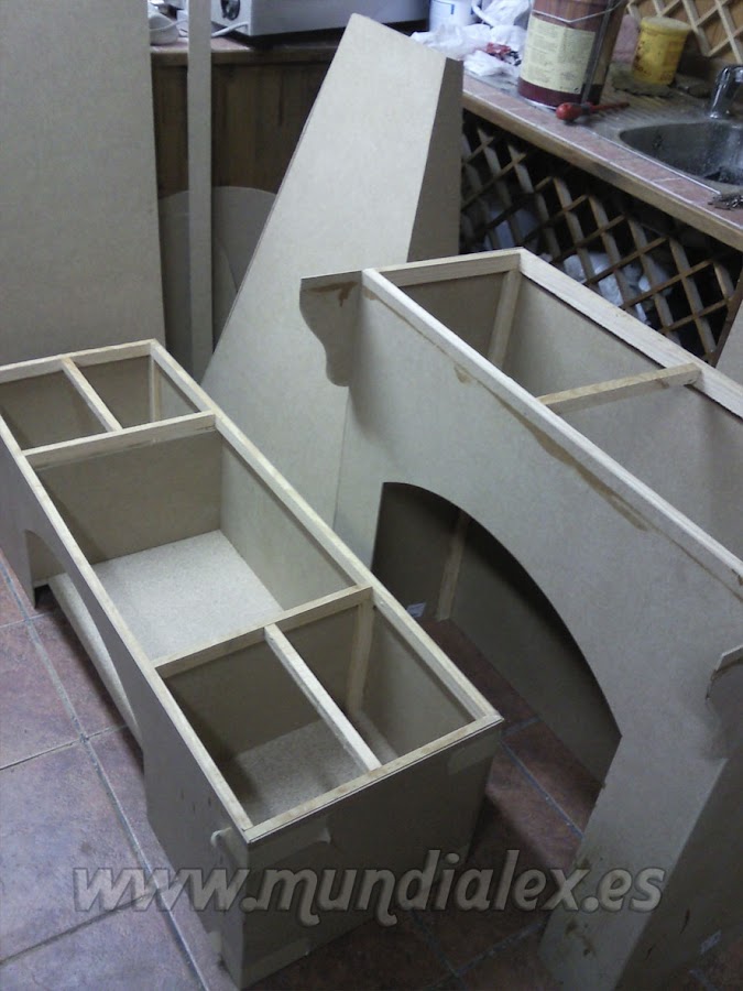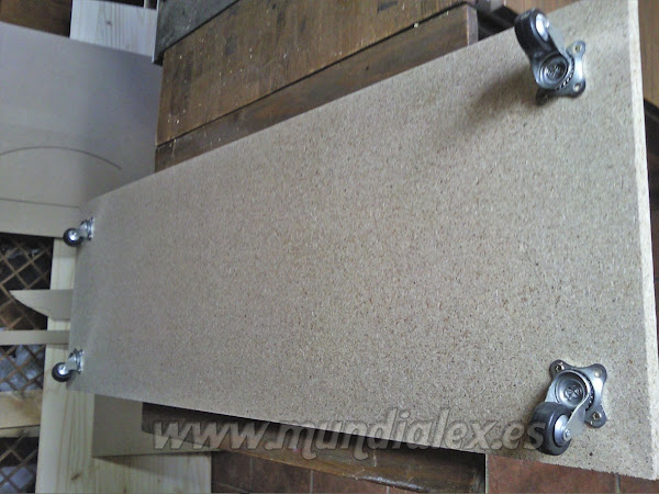 La base es de aglomerado de 16mm con sus cuatro ruedas de libre giro.