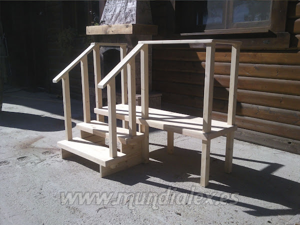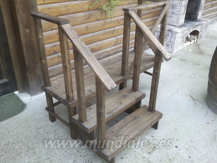 Ahora a por la escalera. Está hecha en madera de pino y abeto y terminada con protector para la madera de color roble.