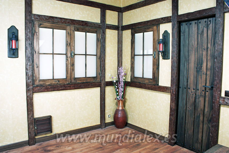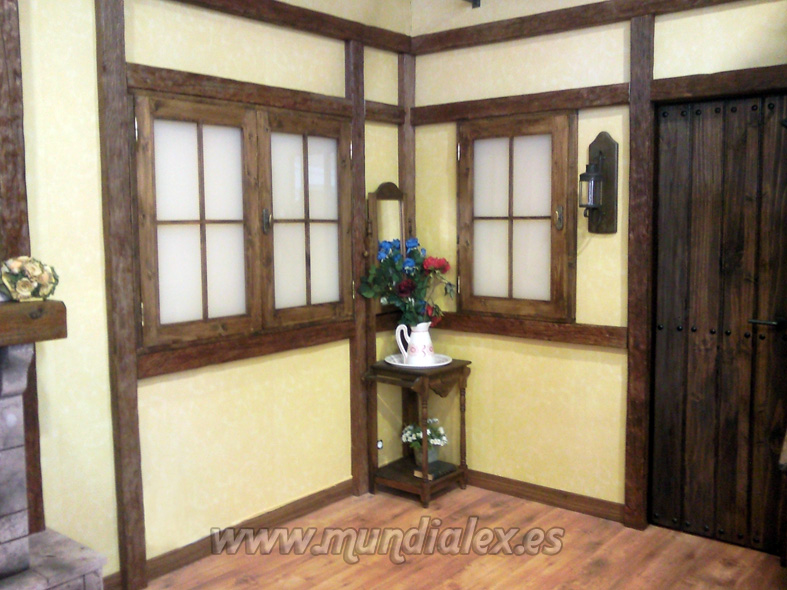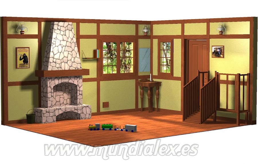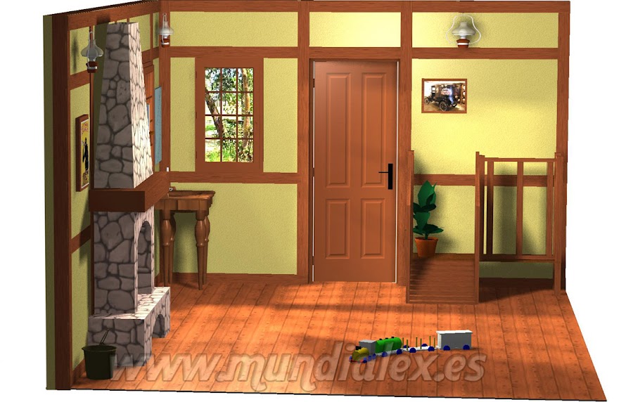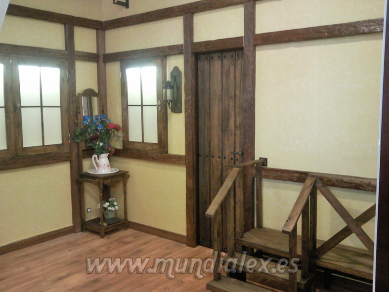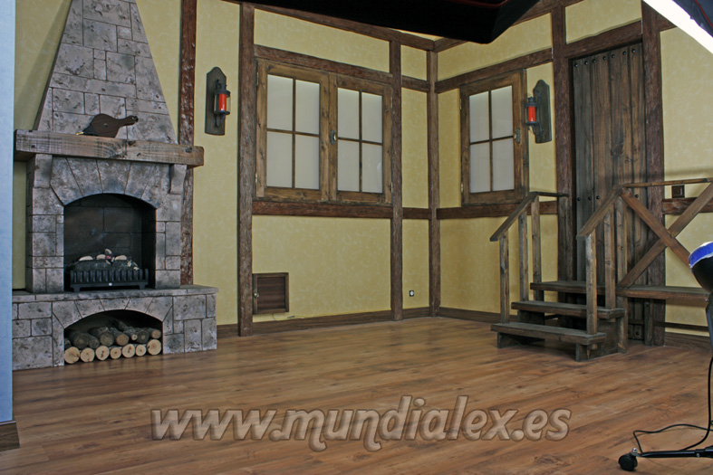 Como se puede ver en las fotos del proyecto, se trata de recrear el interior de una casa rústica, para ello realizaremos los siguientes currelos: