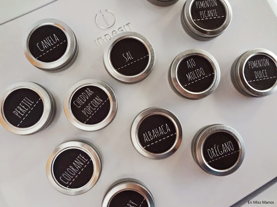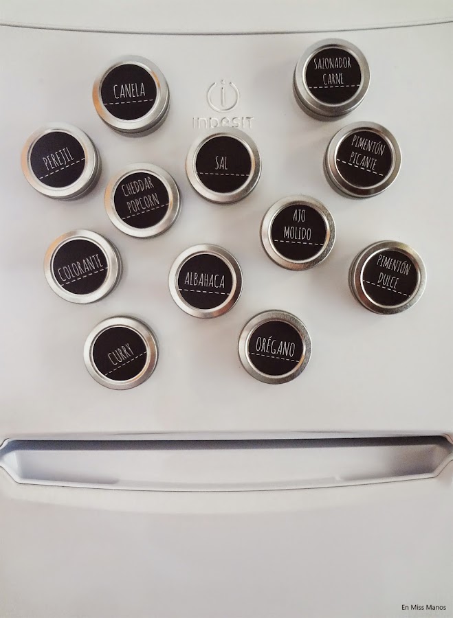 Como el logo de Coca-Cola lo quería quitar hice yo mis propias etiquetas (bien sencillas) con cada una de las especias que tenía y las pegué.