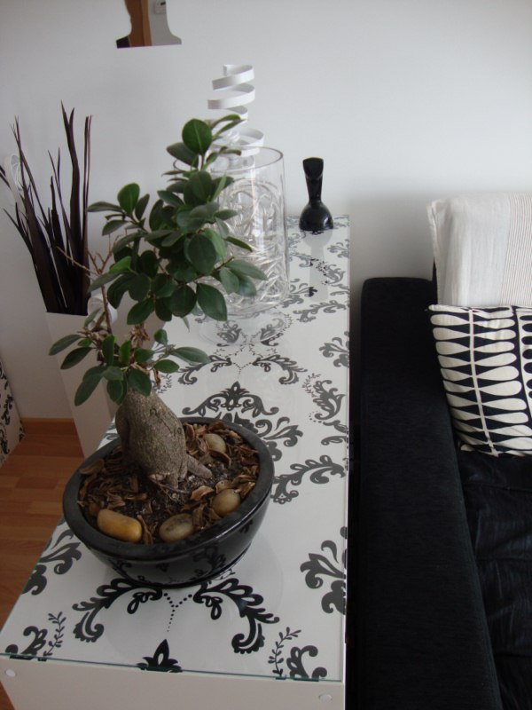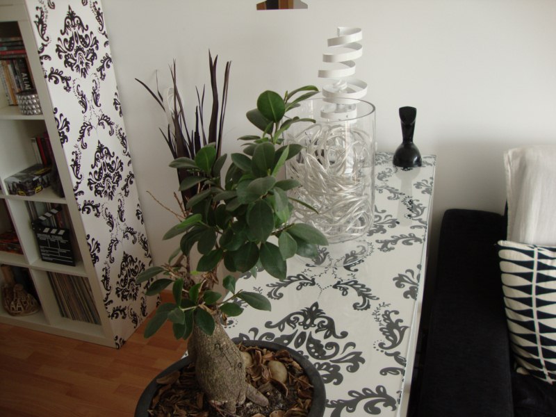 Para separar los dos ambientes, he puesto otra expedit con ruedas y para que quedaran conjuntadas, le he puesto el mismo papel cubriéndolo con un cristal para que este no sufra ningún desperfecto.