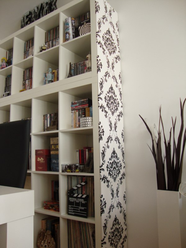En el salón tengo 2 Expedit unidas. El lateral no me gustaba ya que quedaban a la vista los tornillos que arman el mueble.
