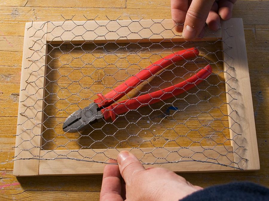 La realización del marco frontal, con malla de gallinero.