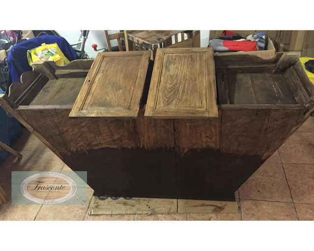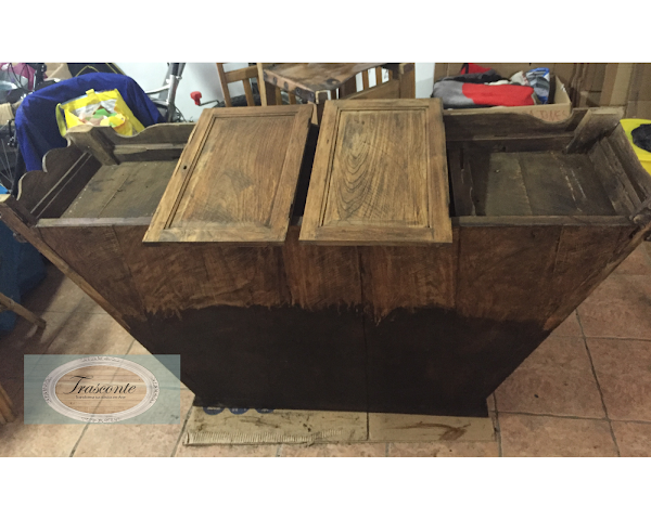 Fue un mueble muy castigado, golpeado, mordido y manchado por el tiempo. Aunque nunca fue atacado por la carcoma, puede que sea porque estaba recubierto de una especie de betún grasoso que podría ser petróleo. Y el color tan oscuro que tenía.