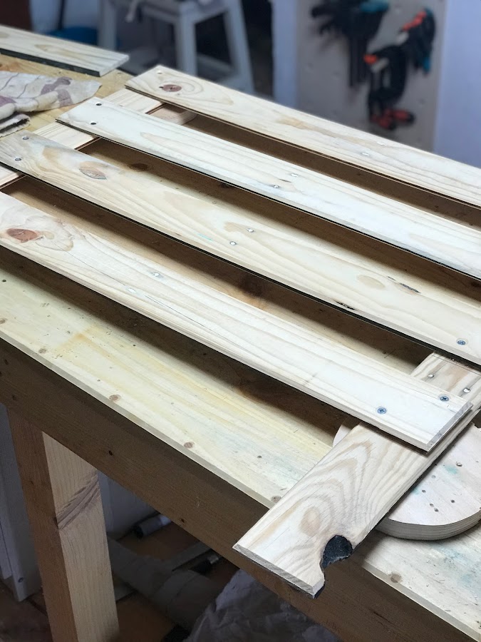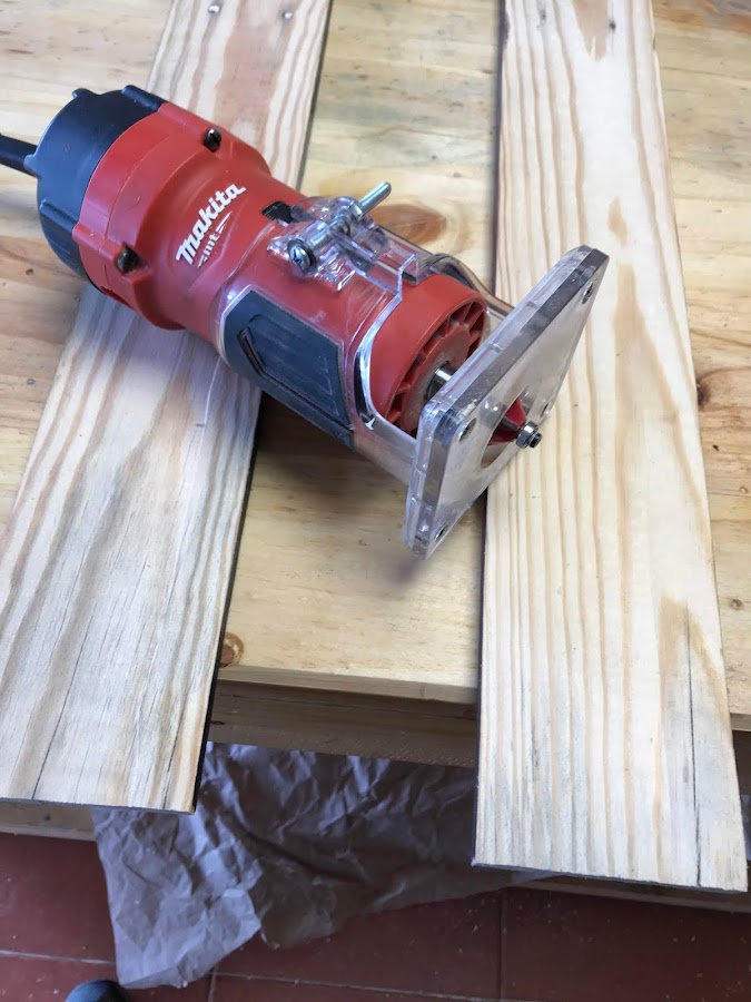 Utilizando la fresadora le dí forma a todos los cantos de los listones. Las maderas no eran demasiado gruesas asi que la fresa que elegí apenas le dí profundidad para evitar que las maderas se agrietaran.