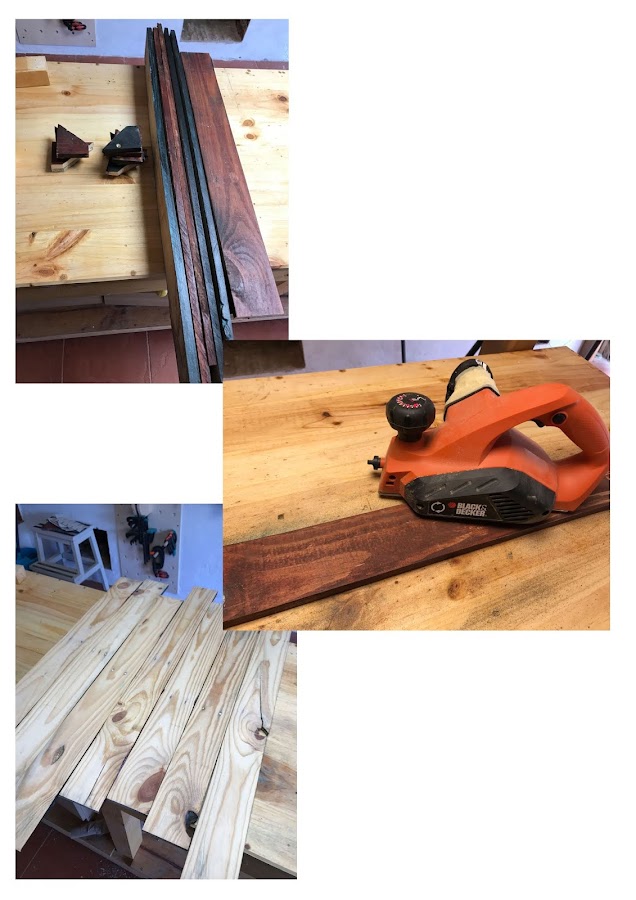 Las tablas de palets que he reutilizado estaban pintadas y lo primero que hice fue cepillarlas para que se quedaran con su color natural a madera. Fuí regulando el cepillo eléctrico hasta conseguir el acabado que quería.