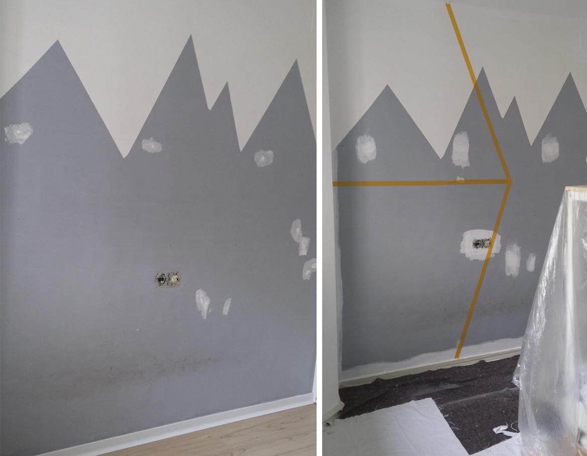 Teníamos unas montañas pintadas, pero con el uso ya estaba sucia y al quitar algunos detalles pegados se había desconchado, así que tocó reparación.