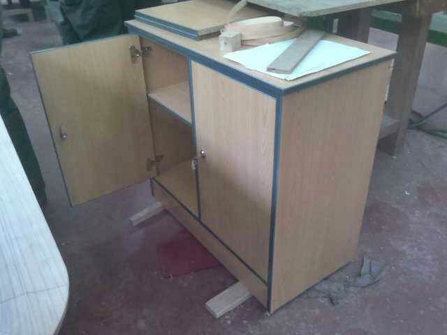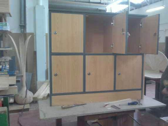 Aqui unas pequeñas taquillas para un despacho. Se le encolaron cantos de pvc antes de montarla, los bordes restantes se quitaron en la tupi con ayuda de una fresa.