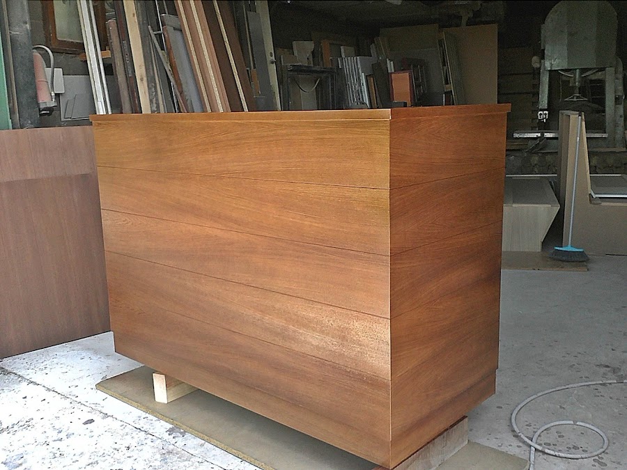 Bueno, mas trabajo para el reservado, aquí unos tableros chapeados, se les hizo unas ranuras, simplemente para darle un toque estético a lo siguiente.