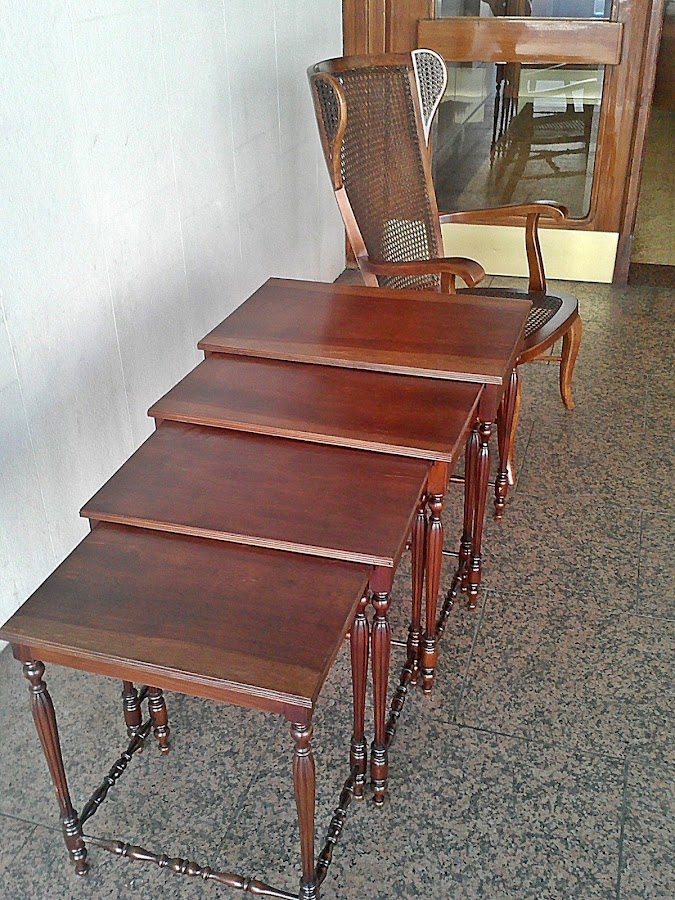 Bueno empiezo con una silla y unas mesitas que tuve que restaurar.