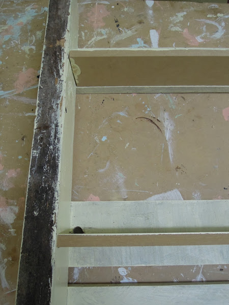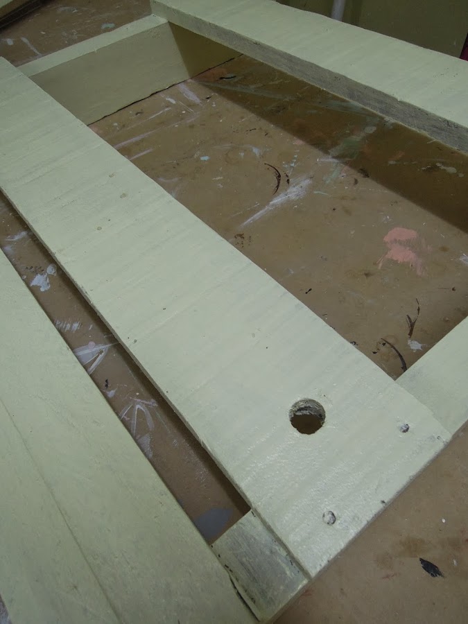 y clavé una plancha de Fibro Fácil de 3"" pintado de blanco,