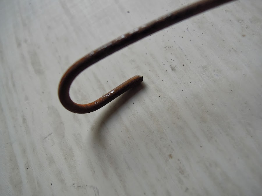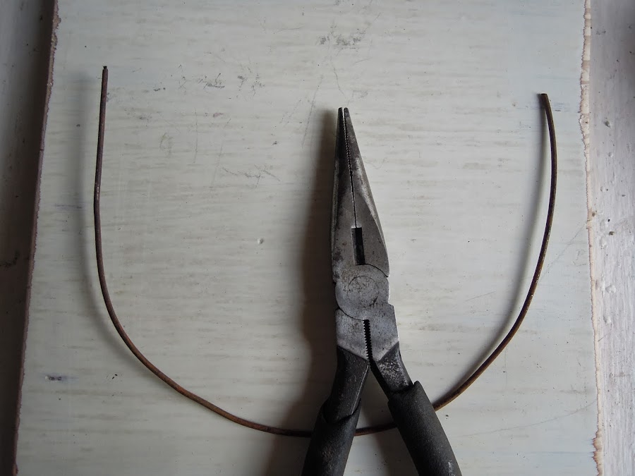 en uno de los extremos del alambre hagan un ganchito como indica la foto: