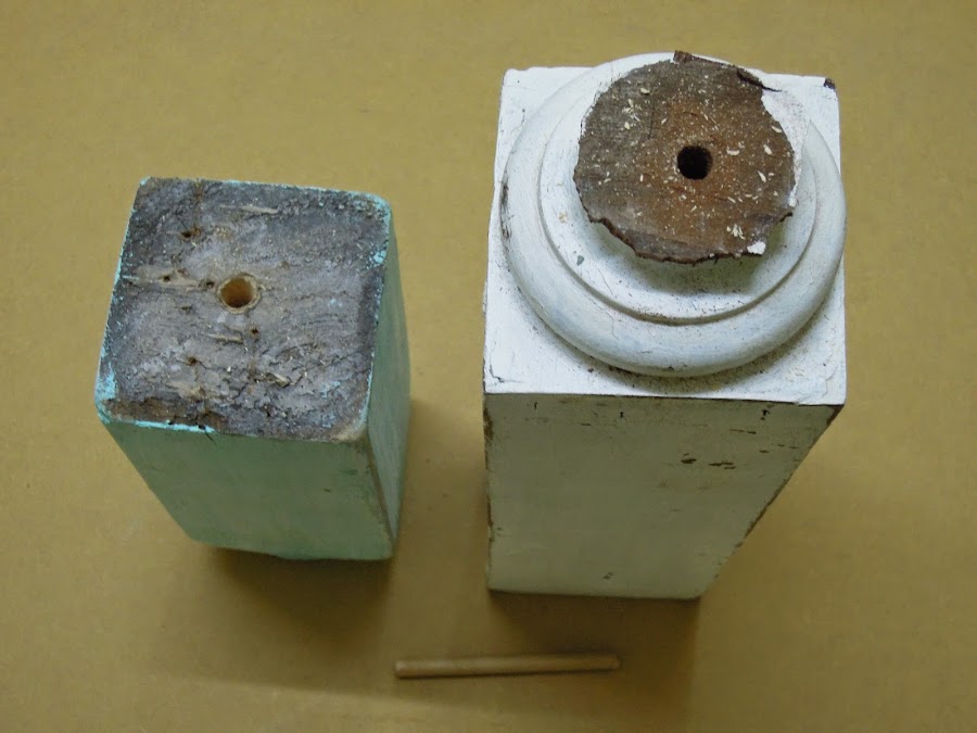 Les hice un agujero a cada uno y los llené con cola de carpintero...
