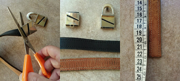 Para la manijas, le quité los broches al cinturón y corté 2 tiras de 22 cm de la largo para las manijas.