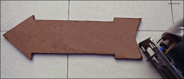 La flecha más o menos la hice a ojo y la corté con la caladora con unos restos de DM que me quedaba de otras cosas que hice, por lo que me salió gratis y fue rápida y fácil de hacer.