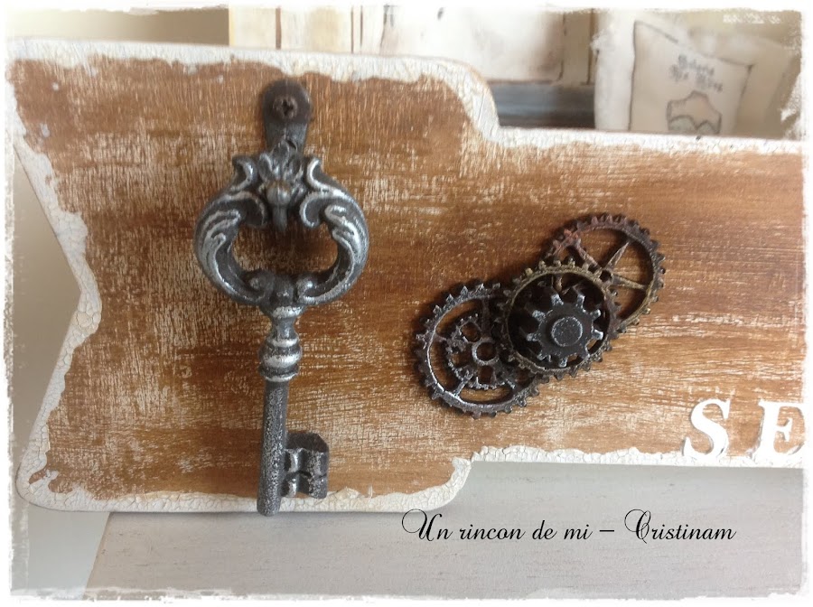 Hace unas semanas les decore otra flecha parecida pero esta vez la convertí en colgador de llaves .