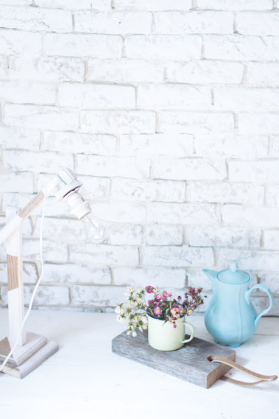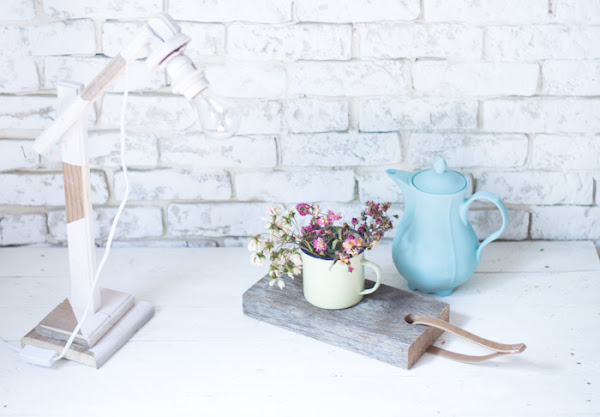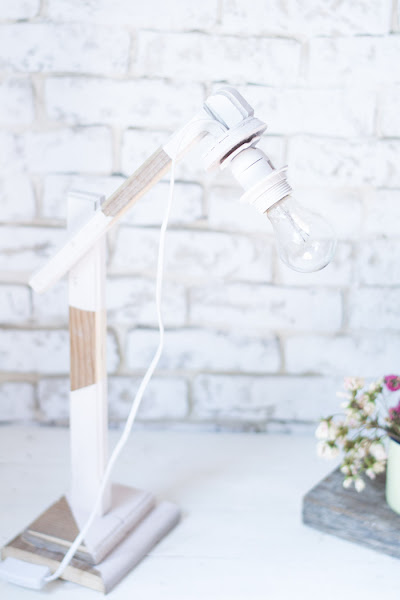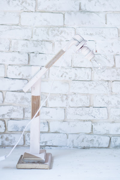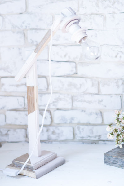 Un poco de lija y un poco de tiempo, para unir las piezas, y solo queda pintarlo, en mi caso utilicé, pintura de auténtico chalk paint. No pinté toda la lámpara, porque me gusta con el contraste del tono de madera recuperada.