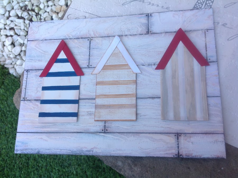 He puesto estas casitas como objeto decorativo.. este cuadro esta sin terminar pero os lo muestro para que veáis otro tipo de fondo imitando madera.