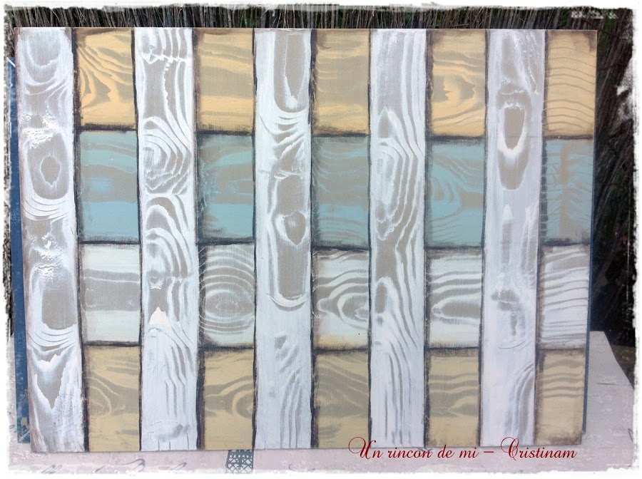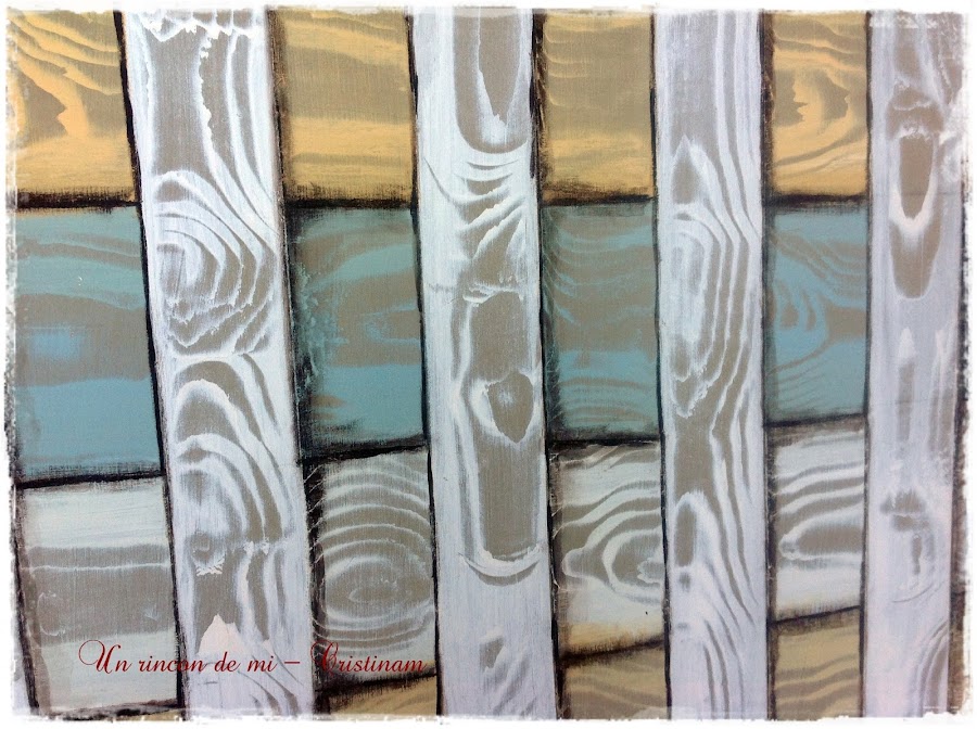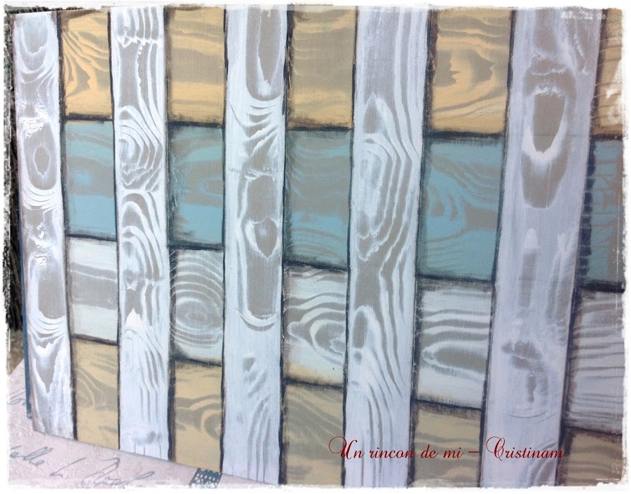 El fondo como podéis ver es imitación a lamas de madera desgastadas en tres tonos.