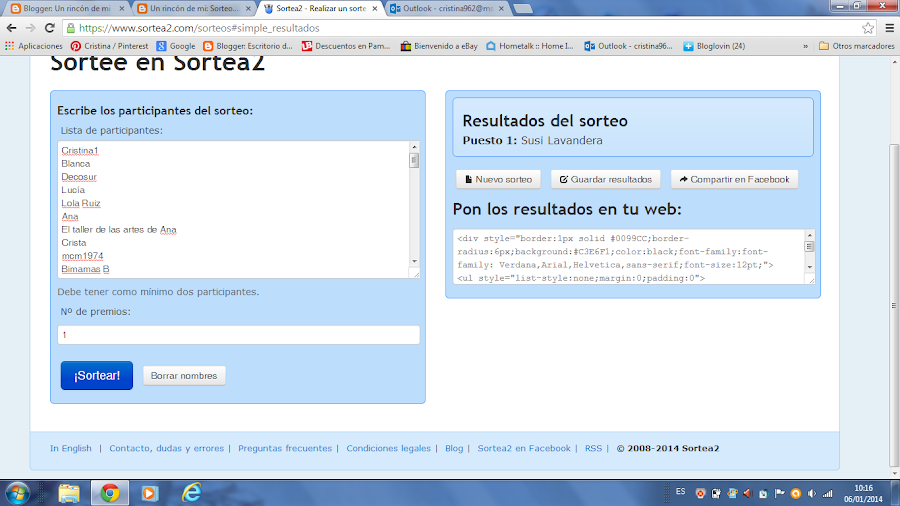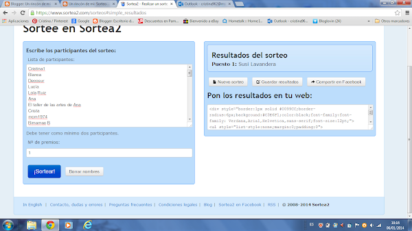 !Felicidades Susi Lavandera el ordenador te ha elegido a tí....!