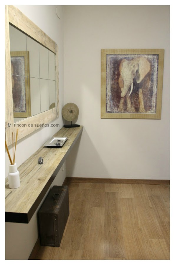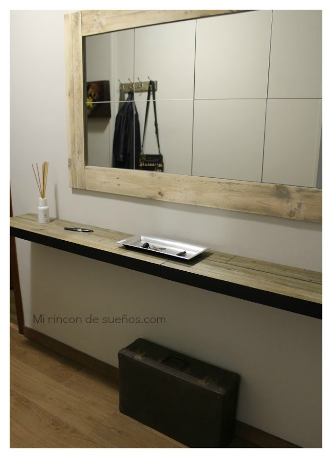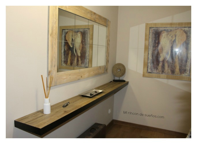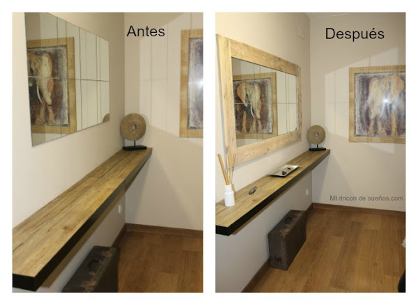 Después de cambiar el color de la pared, y colocar las baldas en paralelo, el espejo que tenía no me acaba de convencer, se veía demasiado pequeño.Puedes verlo aquí.