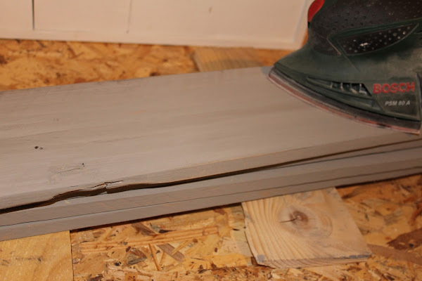 He querido poner un poco de color a la madera, y pinté irregularmente con pintura gris de efecto tiza.