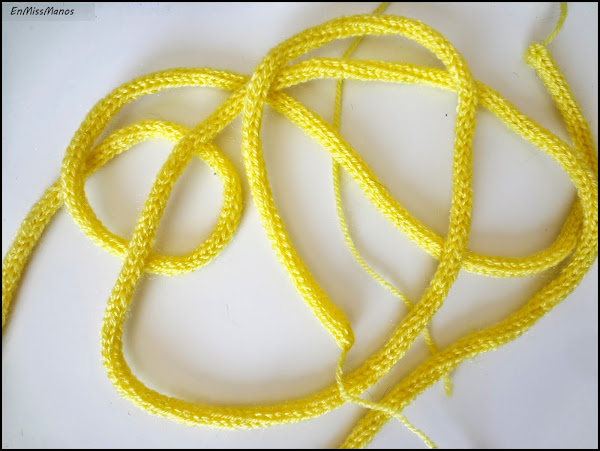 Me puse a tejer con la ayuda de una aguja de ganchillo hasta tener más o menos unos 2 metros de largo.
