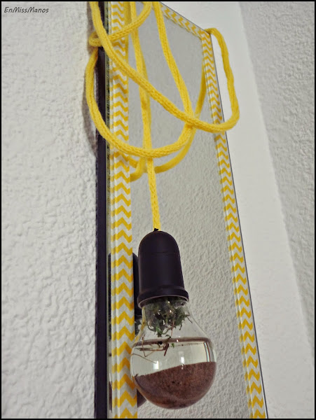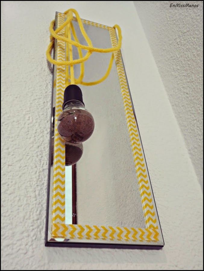 Y un espejo que conseguí del contenedor!, que con un poco de washi tape alrededor con un estampado chevron que está tan de moda, en amarillo y blanco, podía hacer un buen conjunto...