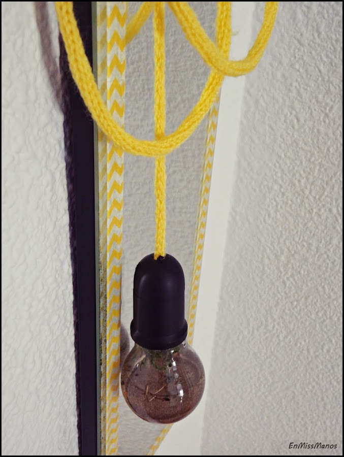 En casa tenía este portalámparas un poco feo sin usar, así que lo pinté de negro y luego metido el cordón tejido lo pegué por dentro con silicona.