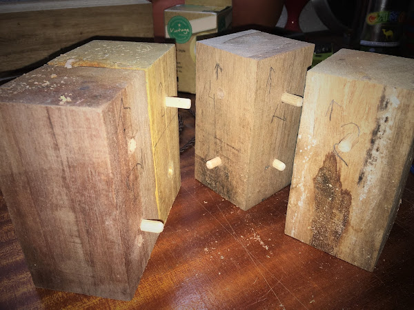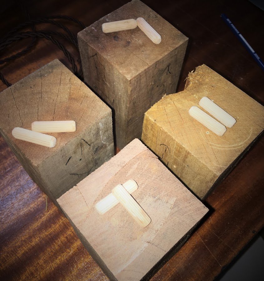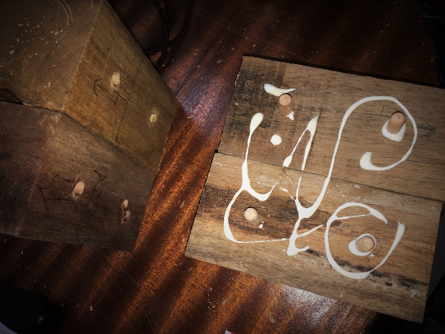 En primer lugar hay que unir los trozos de maderos, encolarlos e introducir unas espigas para una mejor sujeción.