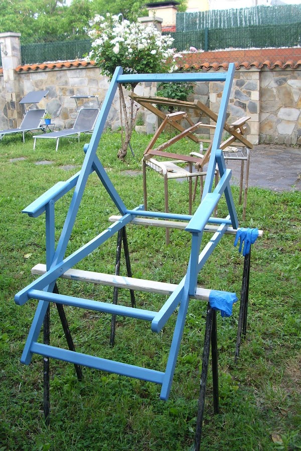 Después de una buena limpieza (incluso usé bisturí para sacarle toda la suciedad de los dibujos), una mano de pintura en azul...