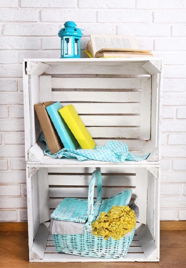 5. Revistero-mesita auxiliar. Olvidaos de tener las revistas y papeles por el medio sin tenéis la suerte de contar con una caja de la fruta, y es que puede convertirse en el mejor revistero para el salón. Además, si le añadimos unas pequeñas patas, también puede servirnos como mesita auxiliar.
