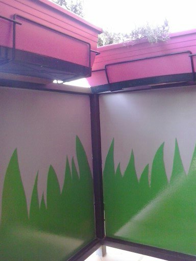 Buscando inspiración encontré una idea que me fascino y me encanto para decorar y alegrar la chapa de la barandilla....................pintarla como si fuera hierba!!..............de ahí el título del post ¿cómo se os ha quedado el cuerpo? ;-))