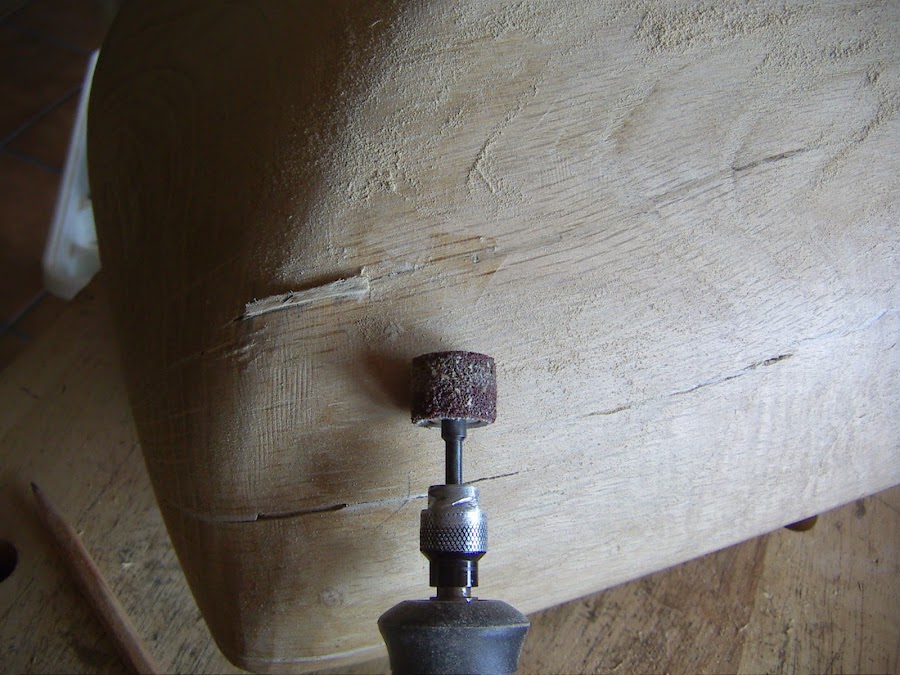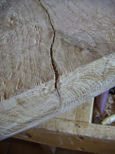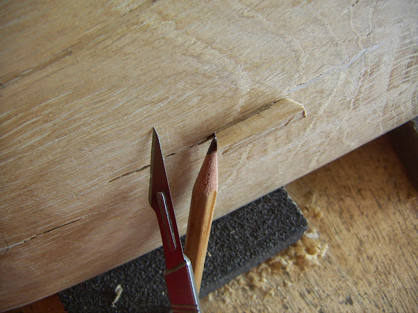 Lo dejé dos o tres meses y, cuando me pareció que las grietas se calmaban un poco me puse con ellas rellenándolas con pequeñas cuñas de madera o , lo que los restauradores profesionales llaman chuletas de madera