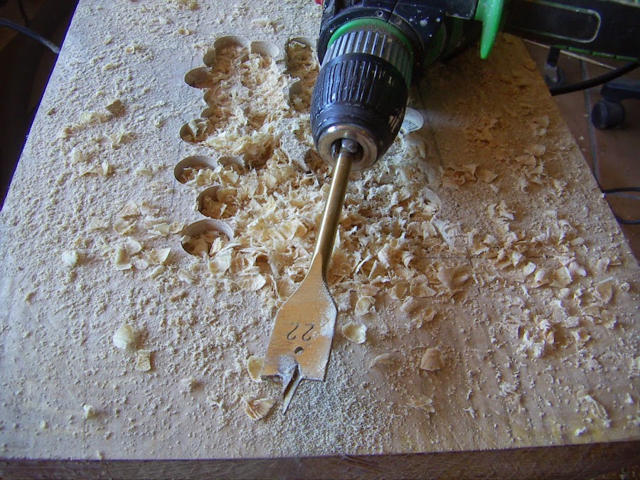 Primero, para ir abriendo camino hice unos cuantos taladros con una broca de pala como esta controlando la profundidad.