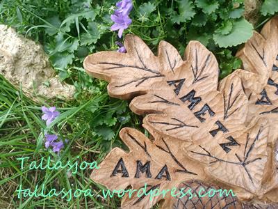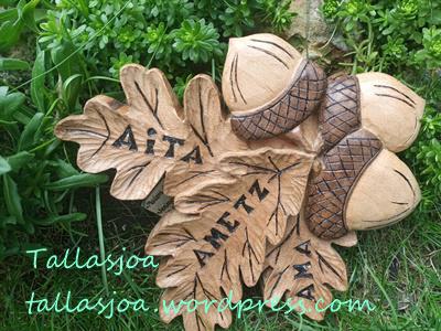Tres hojas de roble con unas bellotas , simplemente , pero me parece un recuerdo entrañable de la familia vasca