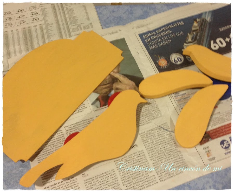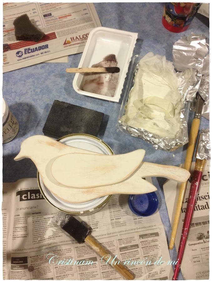 Pájaros con la capa de contraste y ya lijados sacando el tono de abajoLuego le corte dos palabras en vinilo en la Silhouette Cameo y ella ha puesto en un taco de madera decorado estas palabras...