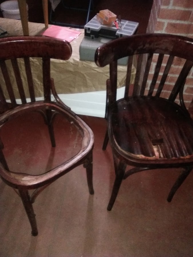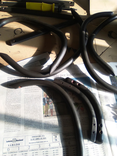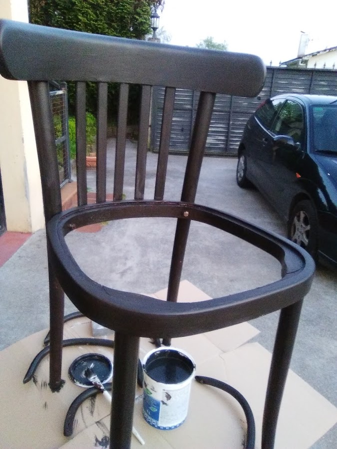 Aunque mi primera idea fue dejarlas en el tono natural de la madera tuve qué desistir porque tenía un tonto rojizo que no me gustaba,así que una vez desmontadas decidí pintarlas de negro