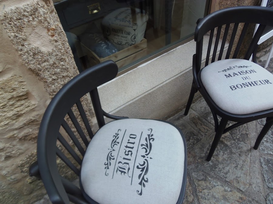 Con una tela de lino.una tablita y un stencil decidí hacer el asiento,pero sudé un montón y no quedaba bien