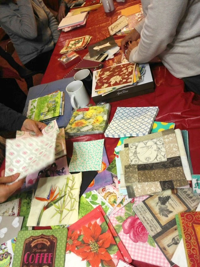 Ya la primera noche organizamos un intercambio masivo de servilletas, que es una afición compartida por todas, y pronto la mesa quedó totalmente cubierta de ellas, para que cada una eligiese las que más le gustaban: