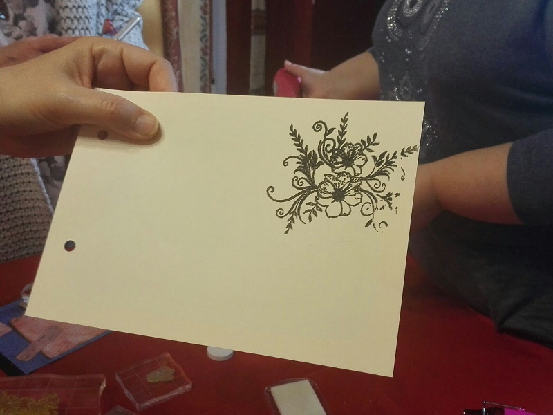 A la mañana siguiente empezamos con un mini-taller de EMBOSING, que inicialmente formaba parte del taller de SCRAP pero se hizo tarde el día anterior. Fue Teresa, de El Rincón de Tauro, la encargada de enseñarnos y dejar con la boca abierta a todas las que no conocían esta técnica.