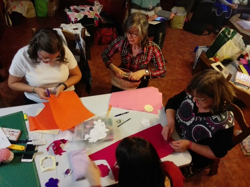 Este taller era especial porque muchas de nosotras somos bastante negadas con la aguja, pero ella consiguió que aprendiéramos, que acabáramos el trabajo y que además le cogiéramos el gusto hasta el punto de querer repetir en casa con otro retal. Fue todo un éxito aunque a Malores la dejamos exhausta de tanta pregunta y tanta solicitud de ayuda.