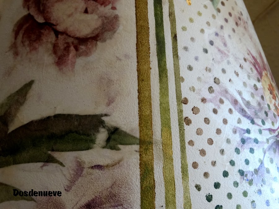 Pantalla de lampara decorada con chalky, decoupage y estarcido
