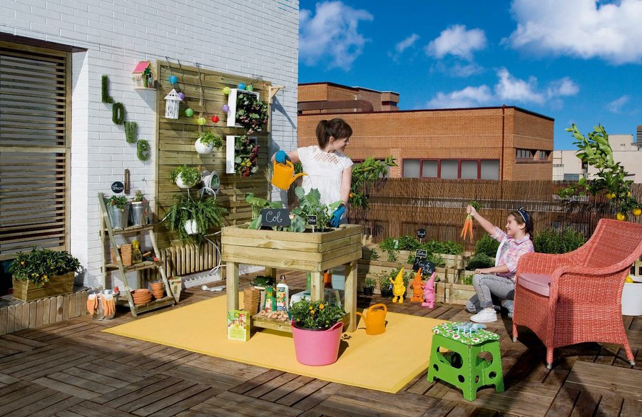 Si tenemos la suerte de contar con espacio extra en el jardín o la terraza, las posibilidades se multiplican. ¿Y qué se nos ocurre para ellos? Por ejemplo, un pequeño rincón de cactus y suculentas, una estructura de madera junto a un árbol para horas de lectura, un jardín vertical de madera y alambre, un pequeño huerto de plantas aromáticas o un espacio más amplio dedicado exclusivamente a la jardinería.