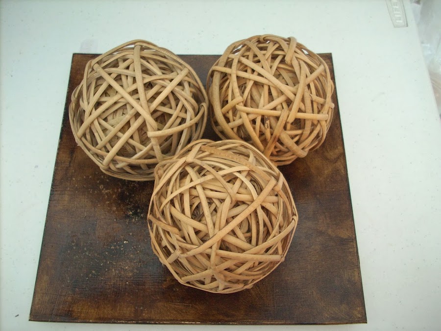 Otra forma de utilizarlas es hacer un centro con varias. También quedan muy bonitas metidas en un jarrón de cristal. Yo tengo en casa este cuyas bolas son de mimbre.