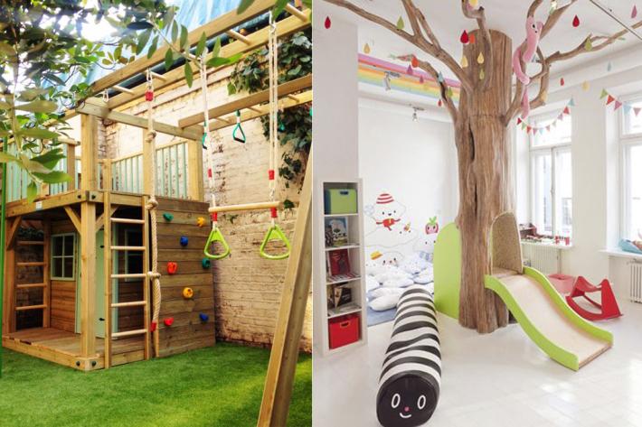 Cuando pensamos en las habitaciones infantiles o de juego, podemos diseñarlas y decorarlas específicamente con un toque infantil y desenfadado. Podemos colocar una pizarra para que los niños dibujen, jueguen y aprendan a escribir; un columpio especial para interior, una cocinita … sin olvidar una pequeña mesa para poder dibujar o hacer los deberes!