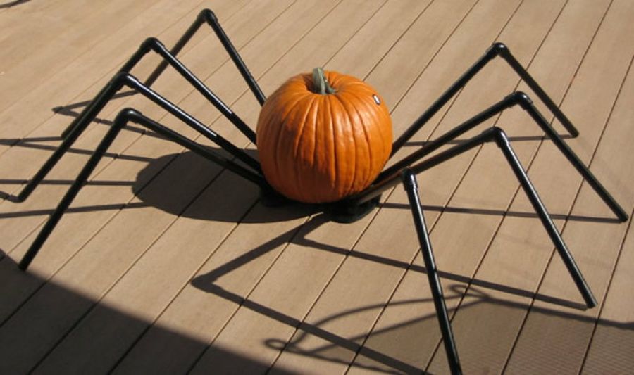También para decorar tenemos la opción de esta araña, que extraemos de Mr. Handyman. Como podéis comprobar, no tiene demasiada complejidad. Además, para la cabeza podemos usar un símbolo protagonista en esta festividad y muy fácil de encontrar en las tiendas estos días, la calabaza.