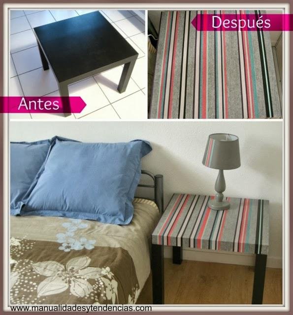 En Manualidades y Tendencias parsonalizan dos mesillas de noche con whasi tape. Tan fácil como ir alternando cintas de distintos colores, pero lo mejor es que lo veáis aquí donde también encontraréis un video-tutorial con todo el proceso. Así puedes conseguir que combinen con cualquier elemento. ¡Trabajo fácil y vistoso!